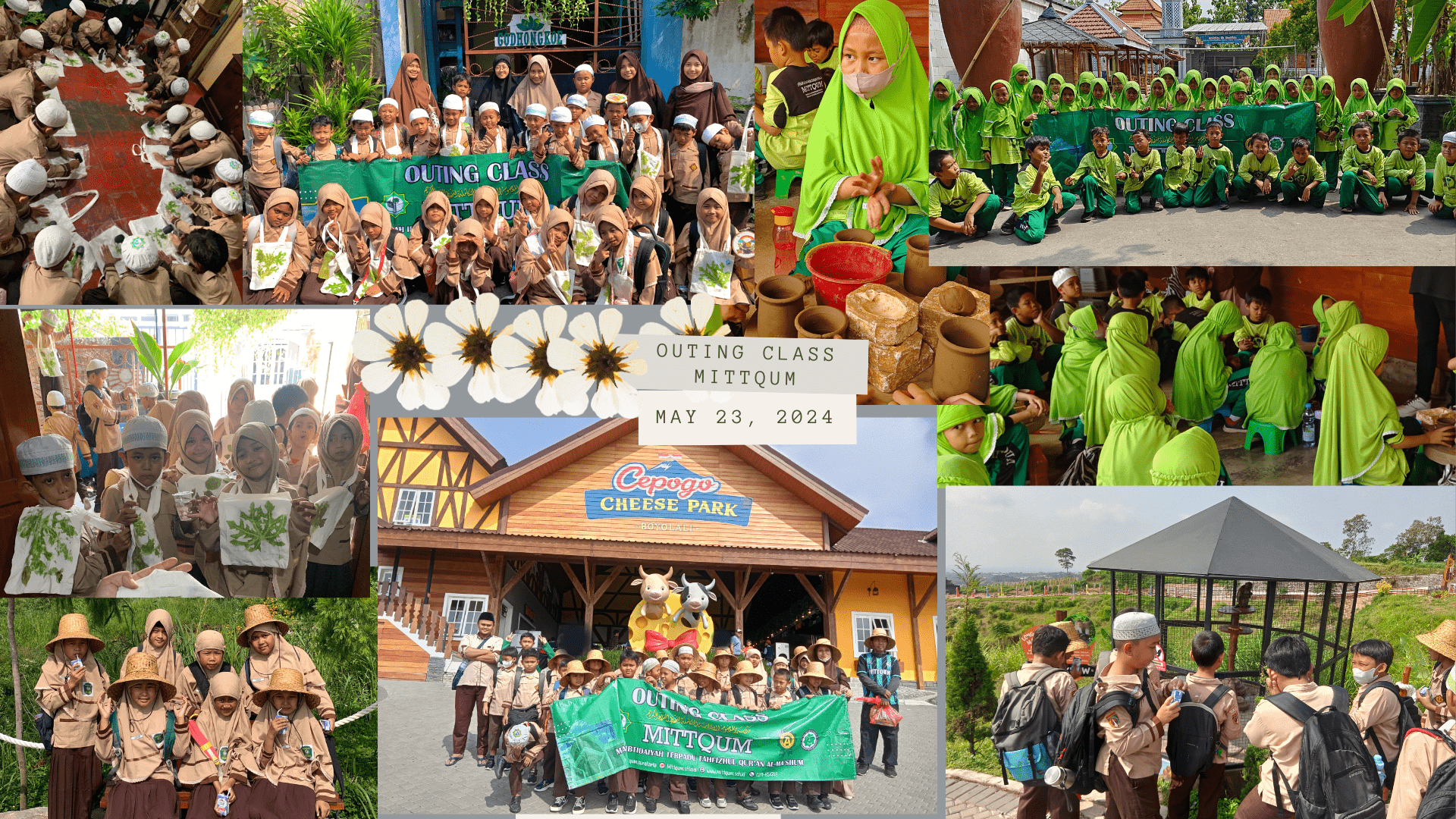 Kegiatan outing class dilaksanakan pada Kamis (23/5/2024) untuk siswa kelas I hingga kelas III MITTQUM Surakarta. Siswa kelas I mengadakan kunjungan ke Godhongkoe Ecoprint untuk mempelajari keindahan daun yang dapat digunakan untuk membatik dengan teknik ecoprint sesuai dengan materi pelajaran Seni Rupa bab 19. Adapun siswa kelas II mengadakan kunjungan ke kampung gerabah Dewi Pajang Klaten untuk belajar membuat kerajinan gerabah, sesuai dengan materi pelajaran Seni Rupa bab 2 tentang kerajinan 3 dimesi dari tanah liat. Sedangkan untuk siswa kelas III, mereka mengunjungi Cimory Cheese Park Cepogo untuk belajar tentang teknologi pangan sesuai dengan tema yang dipelajari pada materi Bahasa Indonesia bab 3.
